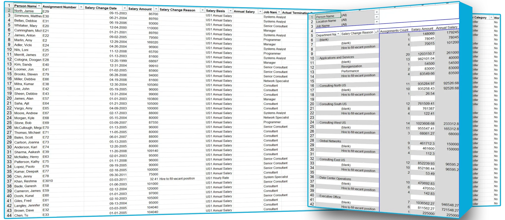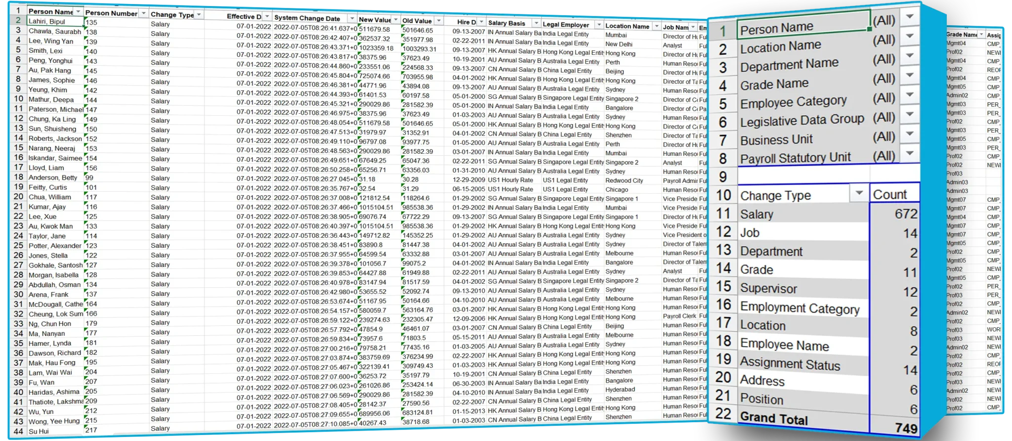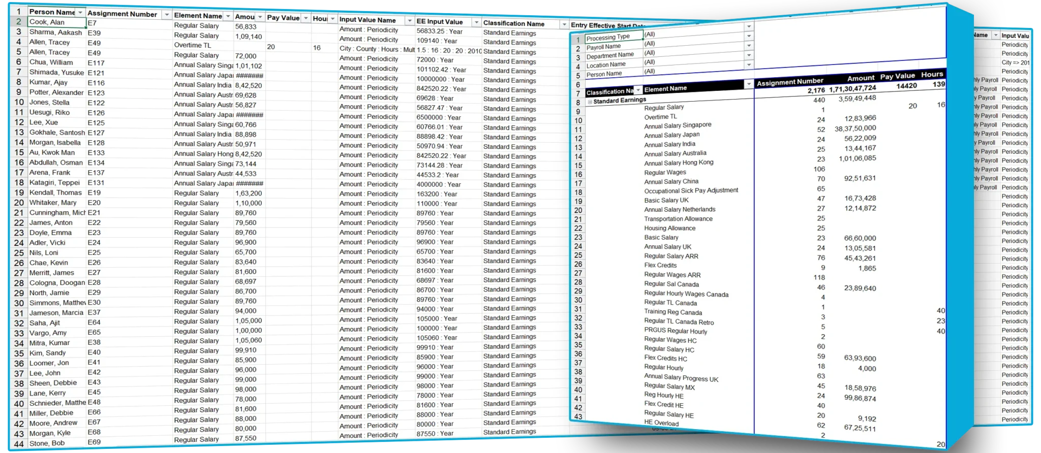 This report displays Salary details of an employee. The information is available in Change Salary page of Fusion Human Resources Module. A row is displayed for each person record and displays information such as Assignment Number, Salary Amount, Salary Change Date, Salary Change Reason, Annual Salary along with other person information. For this report, access to data is dependent on HR roles the user has of Fusion Human Resources module.