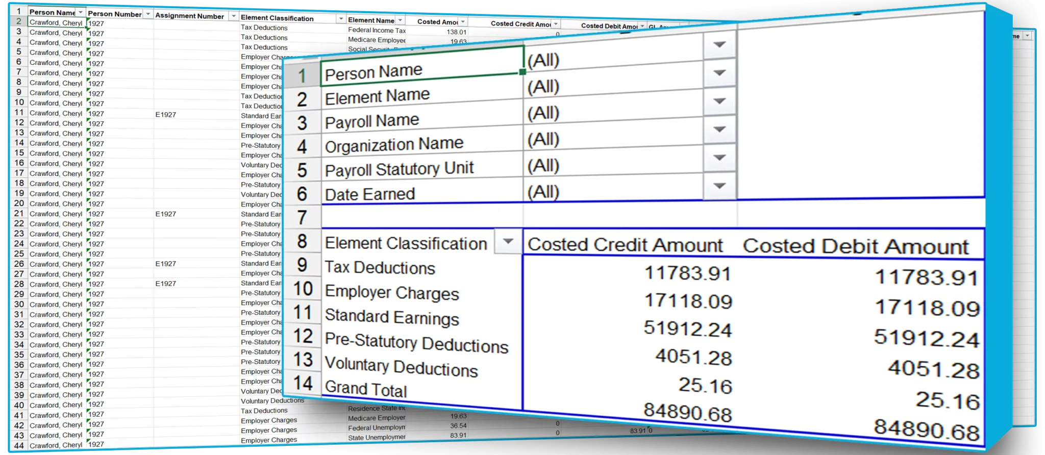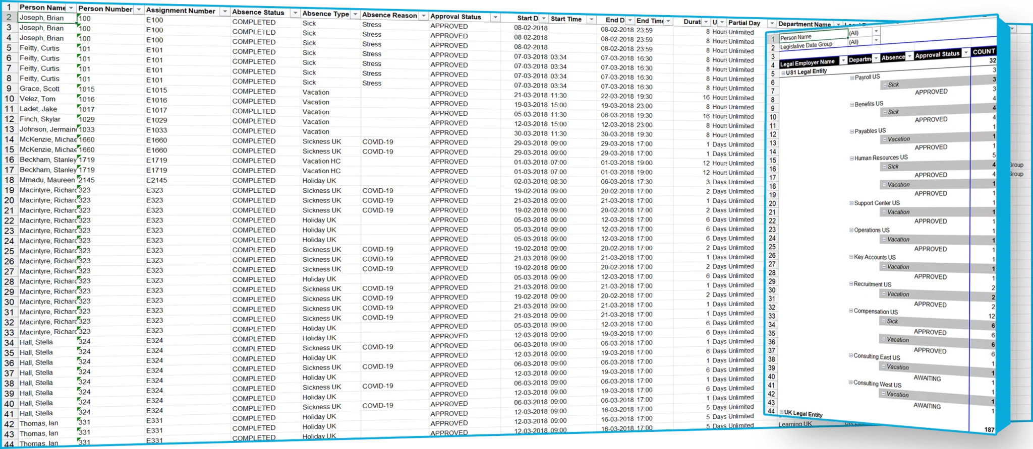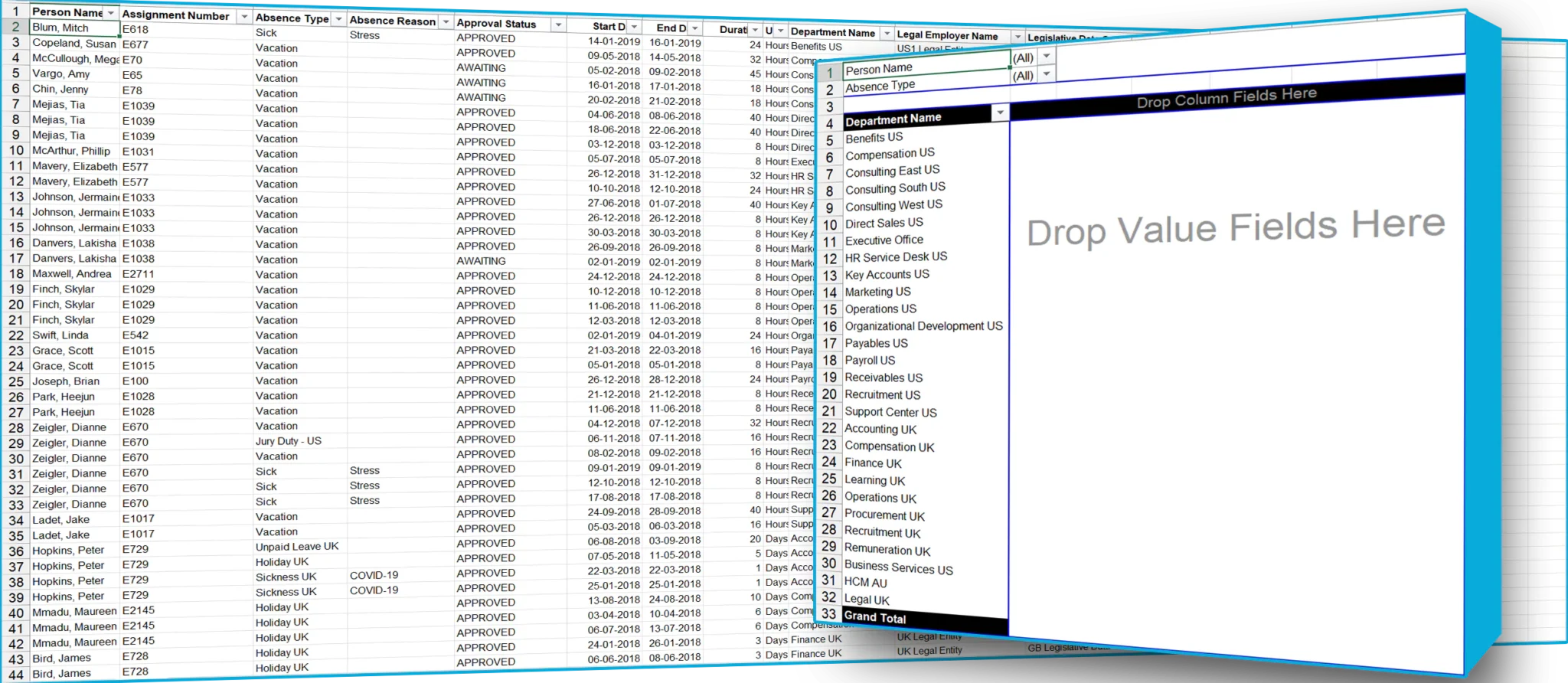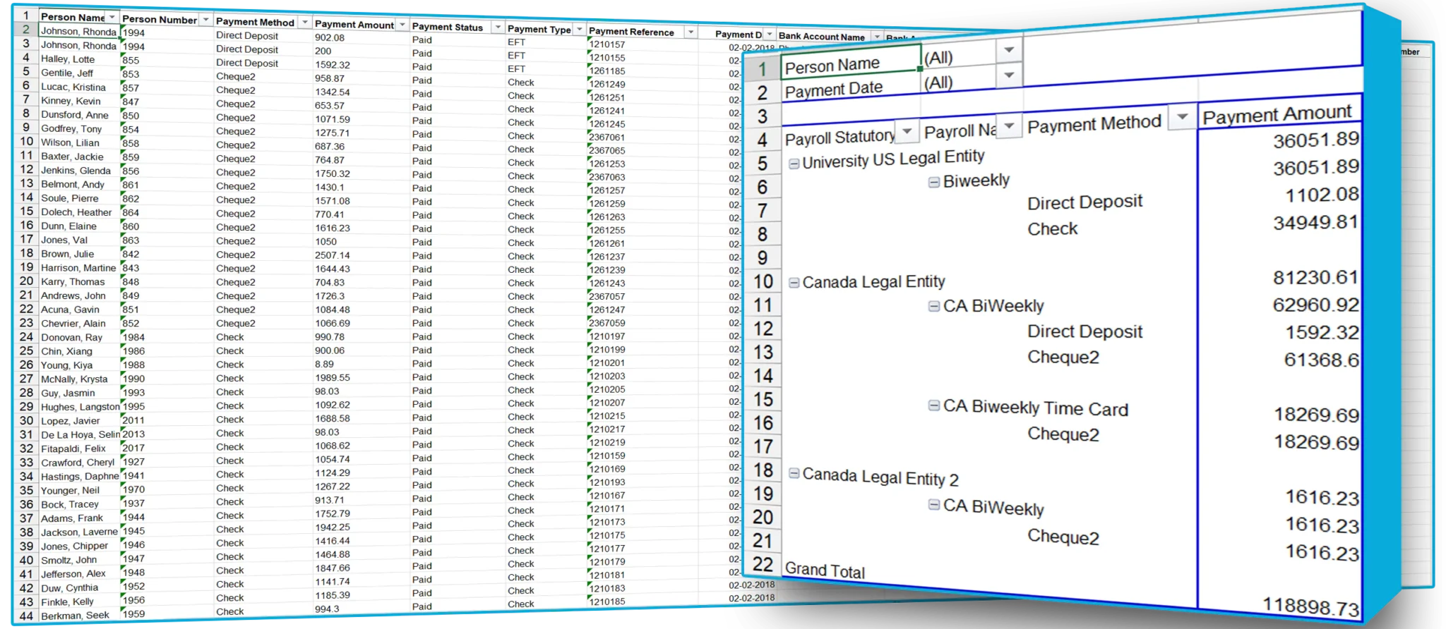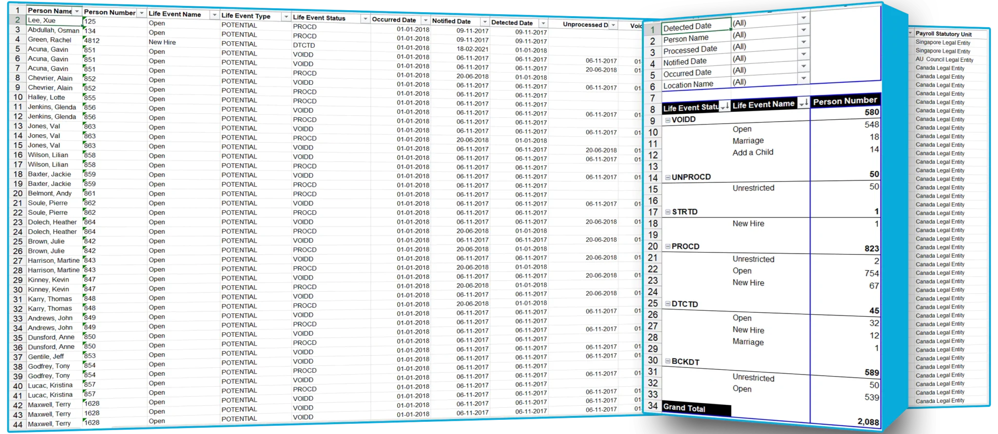 This report displays information about newly hired persons. The information is available in Person, Assignment, Department, Job, Position, Grade, Location windows of Fusion Human Resources module. A row is displayed for each newly hired person and displays information about person and assignments such as Department, Job, Position, Grade, Location, Payroll, Salary for all active employees along with other person information. For this report, access to data is dependent on HR roles the user has of Fusion Human Resources module.